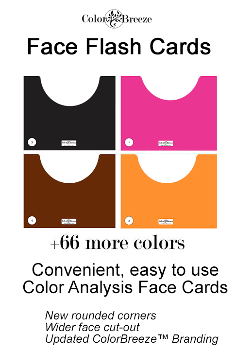 The ColorBreeze Face Flash Cards are a professionally designed color-testing tool that helps determine season using the basic 4-season system, traditional 12-season systems, and my ColorBreeze™ extended system.